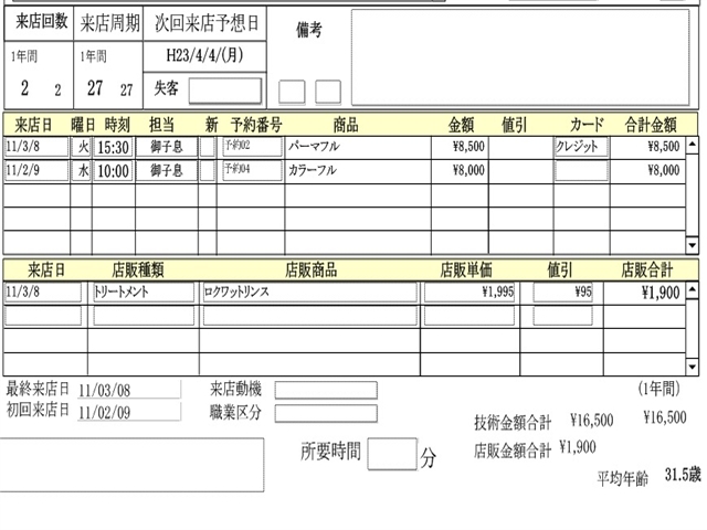 お客様の前回御来店日、来店周期、次回御来店日予測機能、